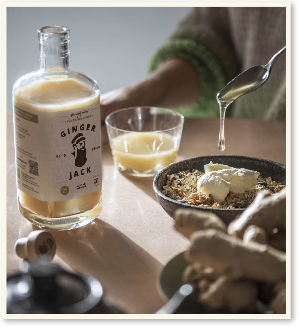 Purer Ingwersaft ist wirklich nicht lecker. Deshalb haben wir als Ingwerspezialisten und Ingwerliebhaber nach einer einzigartigen Formel gesucht, die man pur trinken kann und die wirklich lecker ist. Die Schärfe der Ingwerwurzeln haben wir gemildert, aber die Frische beibehalten, sodass man Ginger Jack und Curcuma Jane pur trinken kann. So kann man ein leckeres, frisches und kraftvolles Getränk genießen, mit allen gesundheitlichen Vorteilen von Ingwer und Kurkuma obendrauf!