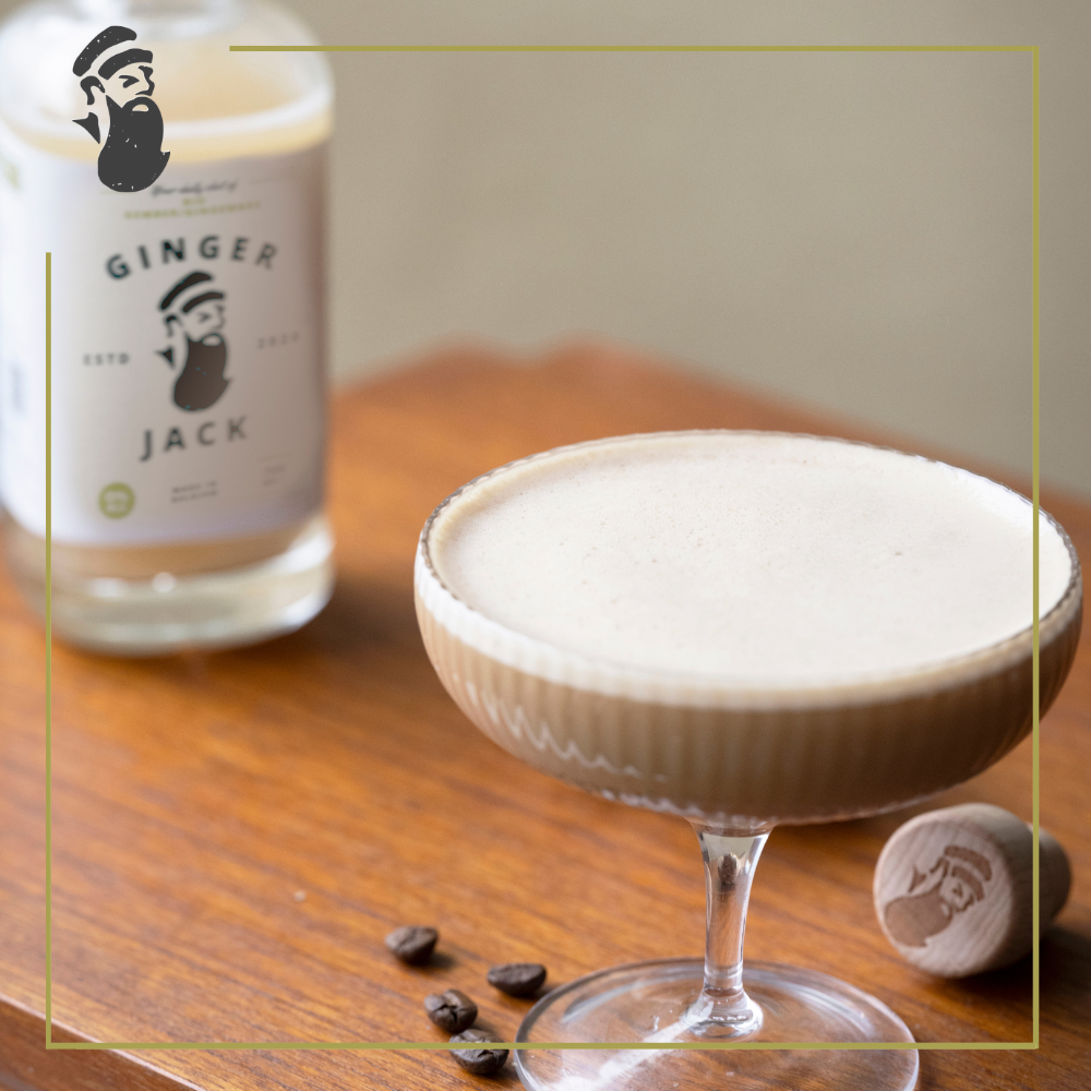 50 ml Ginger Jack, 50 ml milk, 30 ml espresso, 2 to 3 teaspoons condensed milk and ice cubes